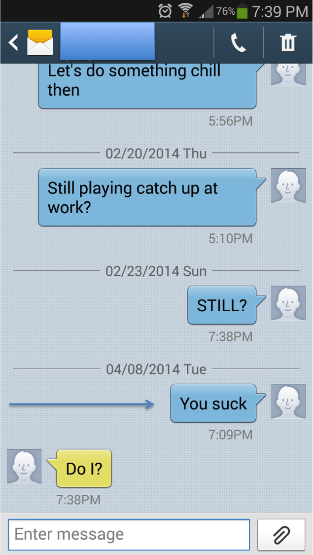 1. The Callout. Call the girl out for not responding to your last text. A short, blunt insult will make her feel guilty for her faux pas. She’ll feel bad for being inconsistent with her kinder self-identity and will try to change your mind to resolve her inner-turmoil. Girls will also be more attracted to you for being a man who isn’t afraid to call them out.